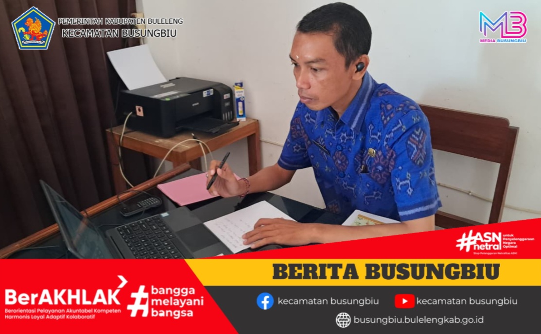 Bertempat di Ruang Sub Bagian Umum dan Keuangan Kecamatan Busungbiu, Selasa 9 Desember 2025, I Putu Kusmadi, selaku Bendahara Pengeluaran Kecamatan Busungbiu mengikuti Sosialisasi Perhitungan, Pemotongan dan Pelaporan Pajak Tahunan 2025 secara daring melalui Aplikasi Zoom Metting.