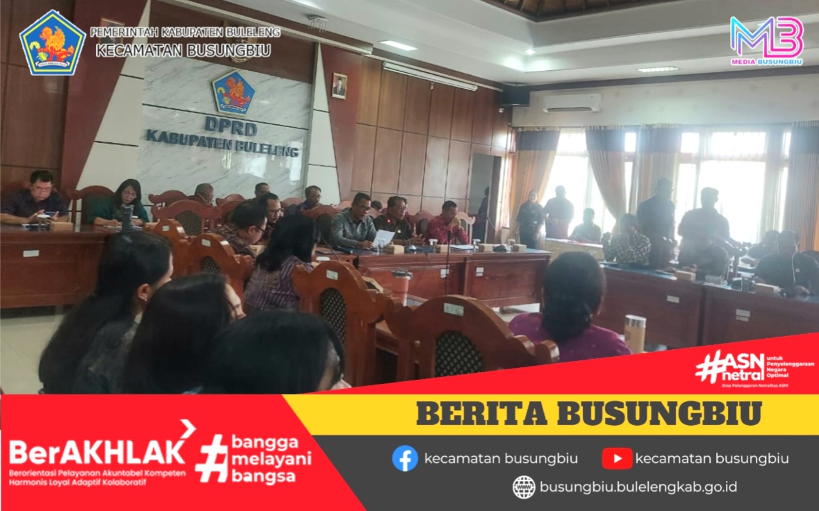 Selasa, 25 Nopember 2025, Camat Busungbiu yang diwakili Staf Fungsional Kadek Winasih, S.Kom menghadiri Rapat Penyampaian Pendapat Akhir Fraksi-fraksi DPRD Kabupaten Buleleng atas RAPBD Tahun Anggaran 2026 yang berlangsung di Ruang Gabungan Komisi, Gedung DPRD Buleleng.