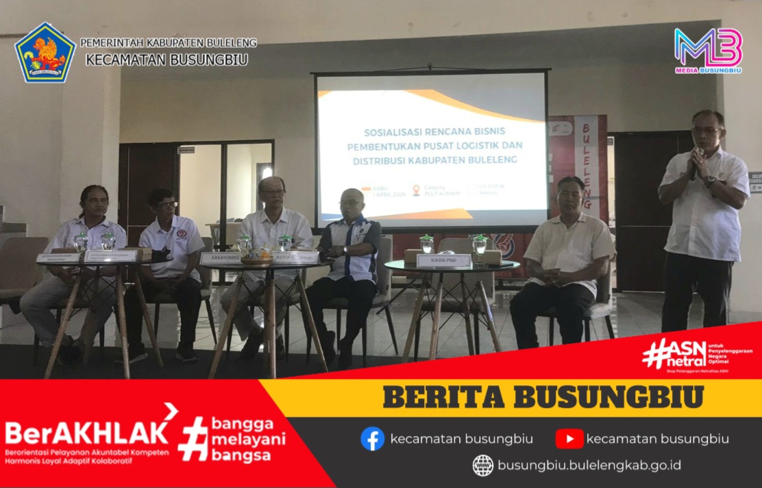 Rabu, 1 April 2026, Staf PPPK Seksi Pembangunan Kecamatan Busungbiu, Komang Resa Saputra, S.AP, mengikuti kegiatan sosialisasi rencana bisnis pembentukan Pusat Logistik dan Distribusi Kabupaten Buleleng.