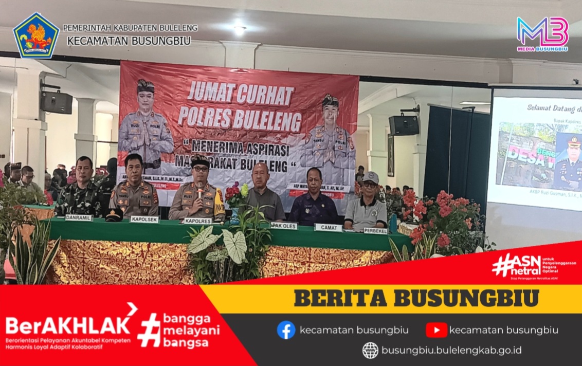 Camat Busungbiu Putu Gede Yudana,S.H mengikuti kegiatan Jumat Curhat Polres Buleleng "Menerima Aspirasi Masyarakat Buleleng" bertempat di IPSA Desa Bengkel.