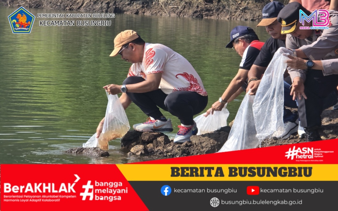 Kegiatan ini turut dihadiri oleh Camat Busungbiu Putu Gede Yudana, S.H. sebagai bentuk dukungan terhadap upaya peningkatan ketahanan pangan serta pemenuhan gizi masyarakat melalui konsumsi ikan.