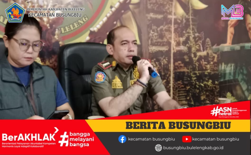 Selasa, 10 Februari 2026, bertempat di Ruang Rapat Satuan Polisi Pamong Praja Kabupaten Buleleng, Kasi Trantib dan Pol PP Kecamatan Busungbiu, I Ketut Budiarsa, S.Sos., mengikuti Rapat Koordinasi dan Penyamaan Persepsi Penanganan Ketertiban Umum dan Ketenteraman Masyarakat serta Perlindungan Masyarakat di Kabupaten Buleleng.Rapat dibuka oleh Kepala Satpol PP Kabupaten Buleleng, Komang Kappa Tri Aryandono, S.IP., M.M., didampingi oleh Kepala Bidang Perlindungan Masyarakat, Luh Made Enni Widyawati, S.E. Kegiatan ini dihadiri oleh perwakilan dari Kapolres Buleleng, Dandim 1609/Buleleng, Kepala Dinas Sosial, Kepala Dinas Kesehatan, Direktur Rumah Sakit Umum Daerah, Direktur RSUD Tangguwisia, Direktur RSUD Giri Emas, serta Camat se-Kabupaten Buleleng yang diwakili oleh Kasi Trantib Pol PP masing-masing kecamatan.
