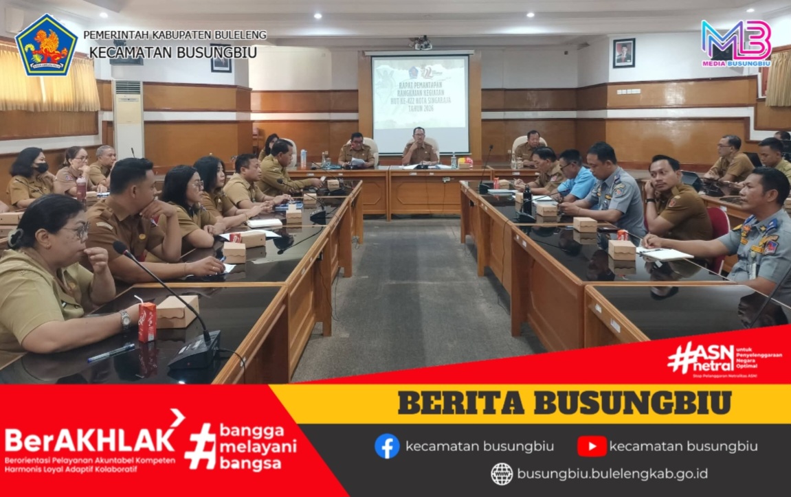 Singaraja, 23 Februari 2026 — Staf Fungsional Kecamatan Busungbiu, I Gede Witara, menghadiri Rapat Pemantapan Kegiatan HUT ke-422 Kota Singaraja Tahun 2026 yang dilaksanakan di Ruang Unit IV Kantor Bupati Buleleng.