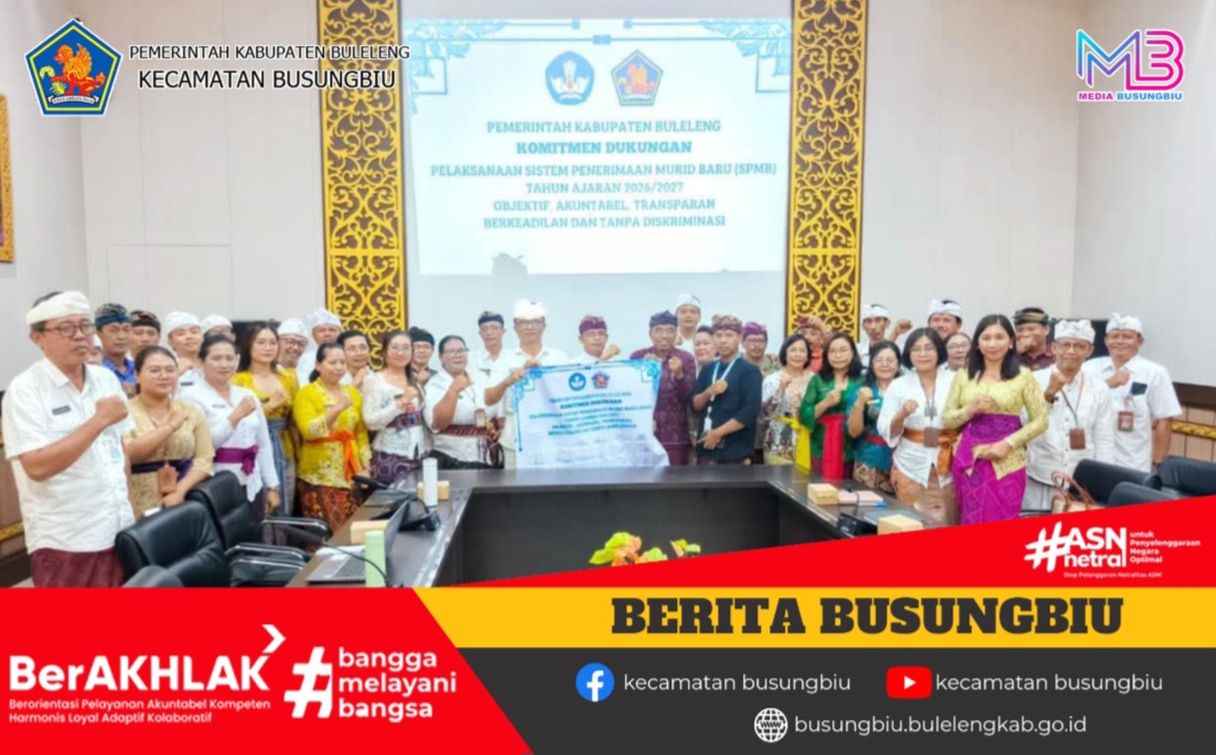 Kepala Seksi Sosial dan Budaya Kecamatan Busungbiu I Putu Ariasa menghadiri kegiatan Sosialisasi Sistem Penerimaan Murid Baru (SPMB) sekaligus Penandatanganan Komitmen Dukungan Pelaksanaan SPMB Tahun Ajaran 2026/2027 yang berlangsung di Ruang Rapat Bappeda Kabupaten Buleleng.