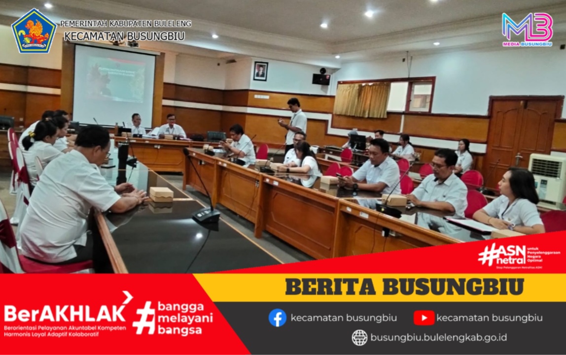 Rabu, 1 April 2026, Staf Fungsional Seksi Sosial dan Budaya Kecamatan Busungbiu, I Gede Witara, menghadiri Rapat Digitalisasi Bantuan Sosial (Bansos) yang dilaksanakan di Ruang Rapat Unit IV Setda Kabupaten Buleleng.