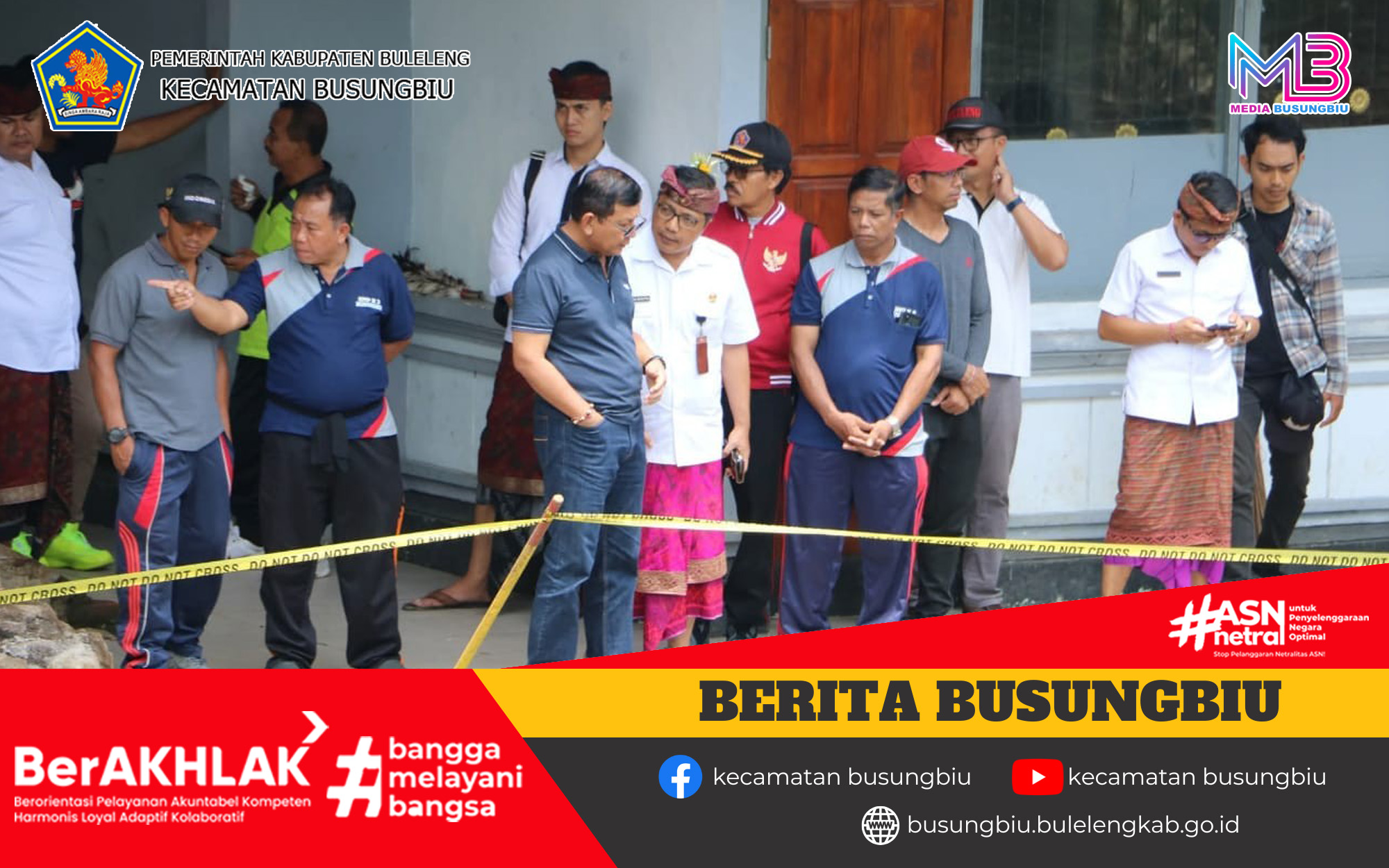 Sabtu, 17 Januari 2026, Plt. Camat Busungbiu, Nyoman Agus Tri Kartika Yuda, S.IP, M.Si mendampingi Bupati Buleleng, I Nyoman Sutjidra melaksanakan pemantauan langsung terhadap dampak dari banjir yang terjadi Desa Sepang dan Desa Sepang Kelod, Kecamatan Busungbiu. Pada kesempatan ini Bupati Sutjidra bersama dengan Kepala Dinas PUTR, Kepala Disdikpora, Kepala Pelaksana BPBD, Kepala Dinas LH, Kepala Bagian Prokom meninjau SMP Negeri 3 Busungbiu yang terletak di Desa Sepang. Senderan dari sekolah tersebut jebol akibat curah hujan yang cukup tinggi. Selanjutnya Bupati Buleleng meninjau senderan rumah warga dan SD Negeri 1 Sepang Kelod yang juga jebol akibat luapan air sungai. Dalam arahannya Beliau menginstruksikan untuk segera melakukan penanganan terhadap kerusakan yang ditimbulkan oleh bencana banjir utamanya di SMP Negeri 3 Busungbiu dan SD Negeri 1 Sepang Kelod. Beliau juga menginstruksikan para guru dan siswa untuk melakukan pembelajaran secara daring untuk menghindari hal-hal yang tidak diinginkan.
