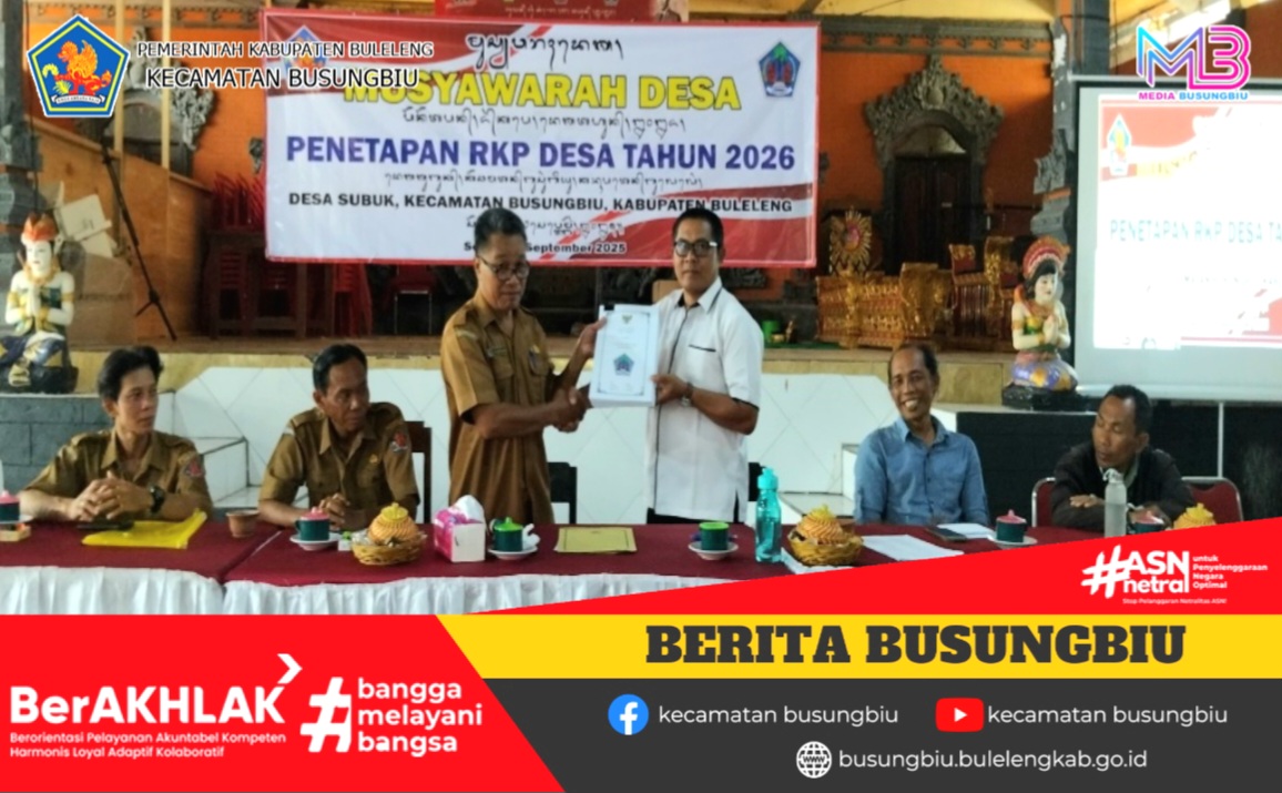 Sebagai rangkaian akhir kegiatan, dilakukan penandatanganan Berita Acara Penetapan RKP Desa 2026 oleh Perbekel bersama BPD. Diharapkan setelah penetapan ini, Pemerintah Desa segera melakukan penyusunan rancangan APBDes agar pelaksanaan program dapat berjalan lebih optimal.