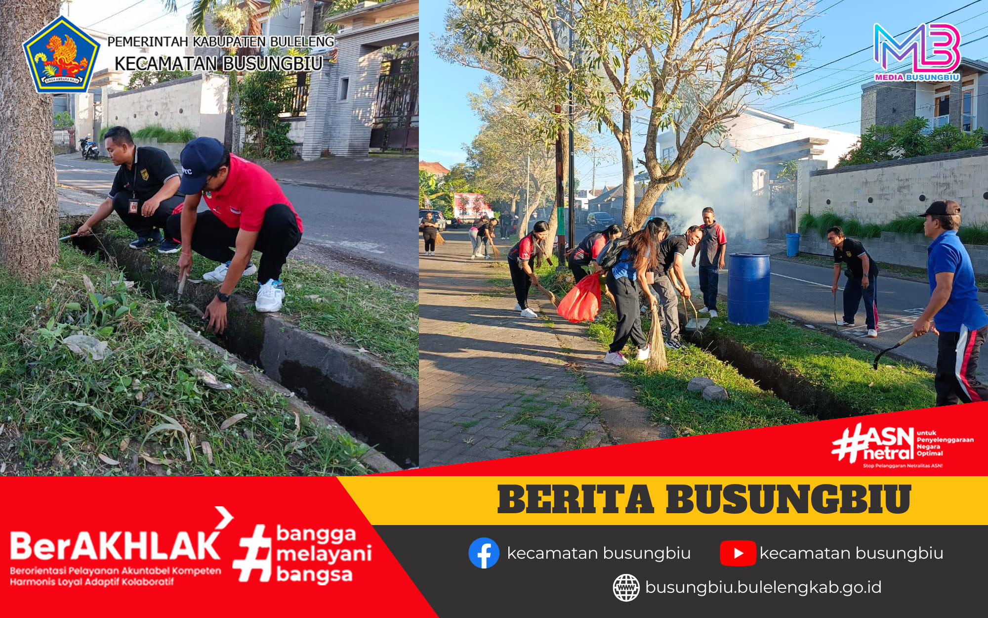 Jumat, 18 September 2025, Camat Busungbiu beserta seluruh staf Kecamatan Busungbiu melaksanakan kegiatan kebersihan sekaligus berpartisipasi dalam kegiatan World Cleanup Day Tahun 2025 yang mengusung tema “Menuju Indonesia Bersih 2029”.Kegiatan dipusatkan di Lapangan Natha Praja Kecamatan Busungbiu, berupa pembersihan drainase dan lingkungan lapangan. Partisipasi ini merupakan bentuk komitmen serta dukungan Pemerintah Kabupaten Buleleng terhadap upaya perlindungan dan pengelolaan lingkungan hidup.