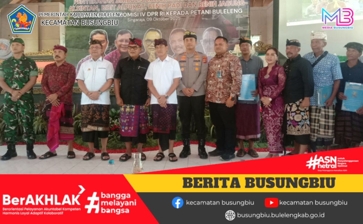 Sementara itu, Anggota Komisi IV DPR RI, I Nyoman Adi Wiryatama memuji semangat petani Buleleng dan program ketahanan pangan yang sudah dilaksanakan Pemerintah Daerah Buleleng. Sekaligus menyerahkan bantuan Alsintan, Bibit Alpukat, Benih Padi, Jagung dan Pupuk Organik.