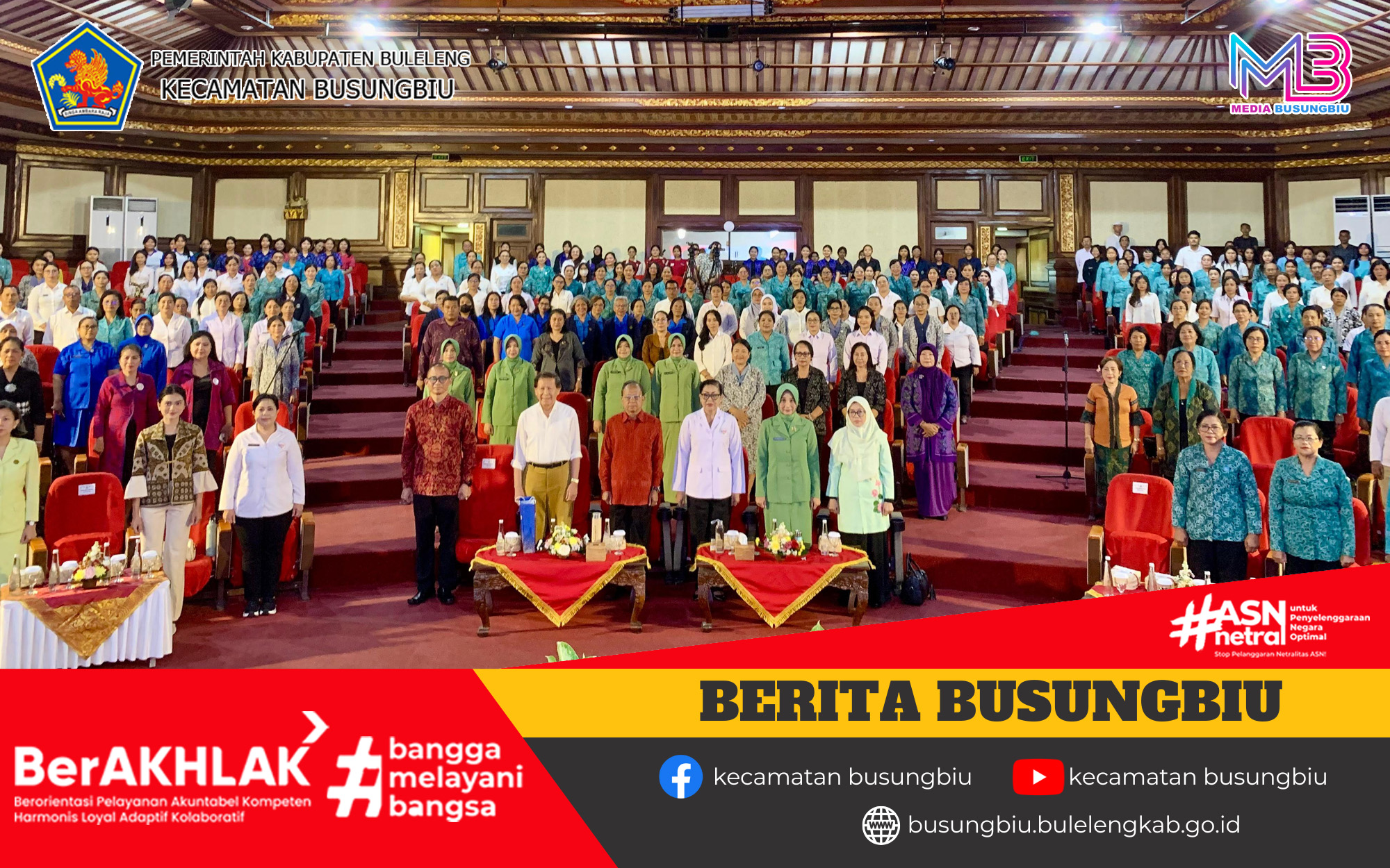Sabtu, 20 September 2025, Ny. Winati Suastika selaku Ketua Tim Penggerak Pemberdayaan Kesejahteraan Keluarga (TP PKK) Kecamatan Busungbiu menghadiri Seminar Perempuan dan Perawatan Jasmani Rohani di Gedung Ksirarnawa, UPTD Taman Budaya Provinsi Bali.Kegiatan diawali dengan menyanyikan lagu Indonesia Raya yang dilanjutkan dengan arahan dari Ketua Tim Pembina Posyandu Provinsi Bali Ny. Putri Koster yaitu mengenai program kerja Posyandu 4 tahun kedepan. Harapan beliau agar Tim Pembina Posyandu dan Tim Penggerak PKk dapat bersinergi dan berkoordinasi satu sama lain.