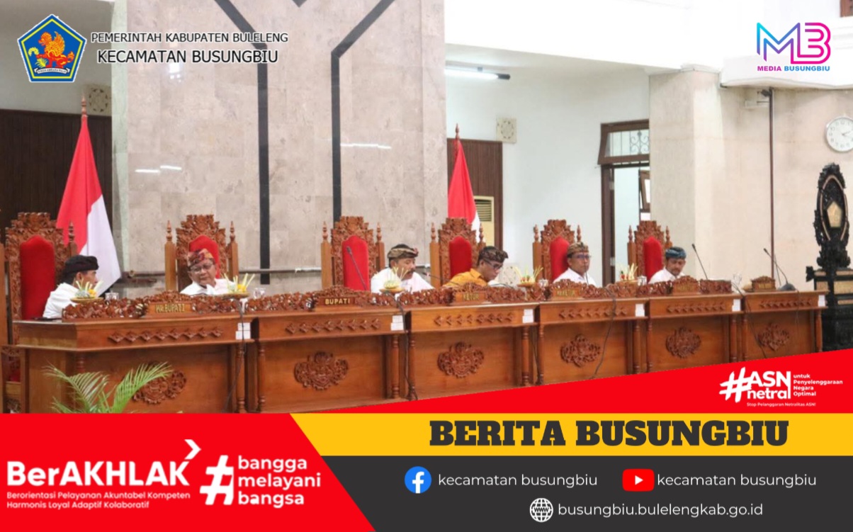Camat Busungbiu dalam hal ini diwakili oleh Kasi Pelayanan Administrasi Terpadu Kecamatan Busungbiu Kadek Artini,S.Sos hadiri Sidang Paripurna terkait dengan penjelasan Bupati atas Rancangan Peraturan Daerah (Ranperda) tentang Anggaran Pendapatan dan Belanja Daerah (APBD) Tahun Anggaran 2026 bertempat di Ruang Rapat DPRD Kabupaten Buleleng.