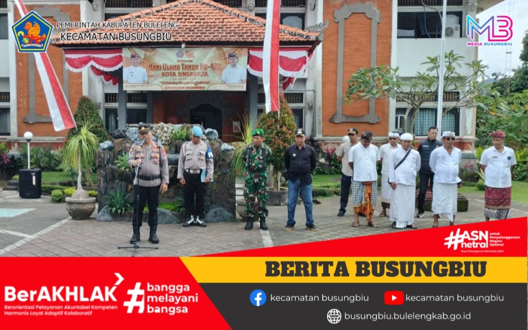 Rabu, 18 Maret 2026, bertempat di halaman Kantor Camat Busungbiu, dilaksanakan Apel Gabungan Kesiapan Pengamanan Hari Raya Nyepi dan Idul Fitri Tahun 2026. Apel dipimpin oleh Kapolsek Busungbiu, AKP Wayan Sukrawan, S.AP., M.AP.