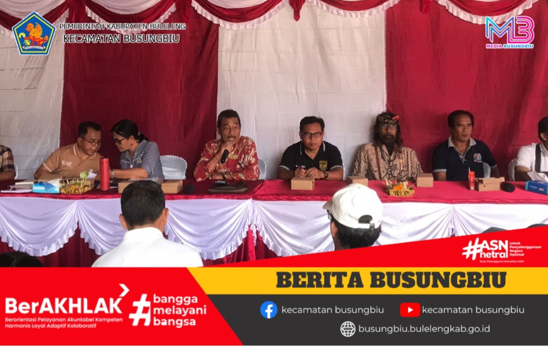 Jumat, 20 Februari 2026, Kasi Pembangunan Kecamatan Busungbiu, I Gede Ariasa, S.Sos., didampingi Staf Pembangunan Komang Resa Saputra, S.AP., menghadiri Musyawarah Desa (Musdes) Penyampaian Laporan Pertanggungjawaban (LPJ) BUMDesa Mandala Parahita Tahun 2025 yang dilaksanakan di Desa Tinggarsari.